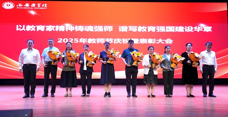 会上,全体人员收看了由教育部教师工作司发布的《2025年教师风采》视频、西安医学院教师职业感悟和学生祝福短片、《师恩如光,医路领航》诗朗诵表演,大会在《西医赋》的歌唱声中落下帷幕。